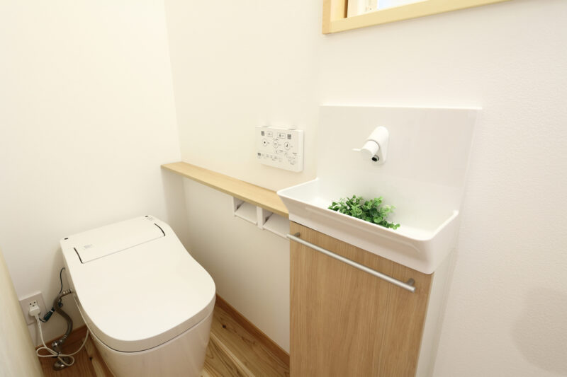 一見して「収納である」とわかるようなものは、一点だけ置くようにしましょう。トイレ用の収納キャビネットや手洗いと収納が一体化しているもの、カウンター型の収納などから、どれか一つに絞って設置することで、すっきりとした空間が実現します。