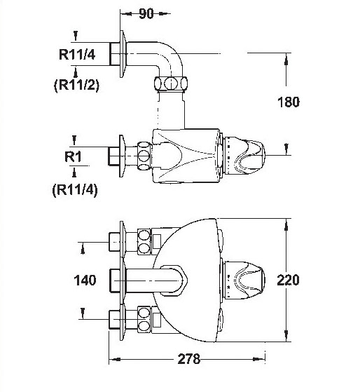 グローサーモXL:大型サーモスタット混合栓1″ 壁取付仕様