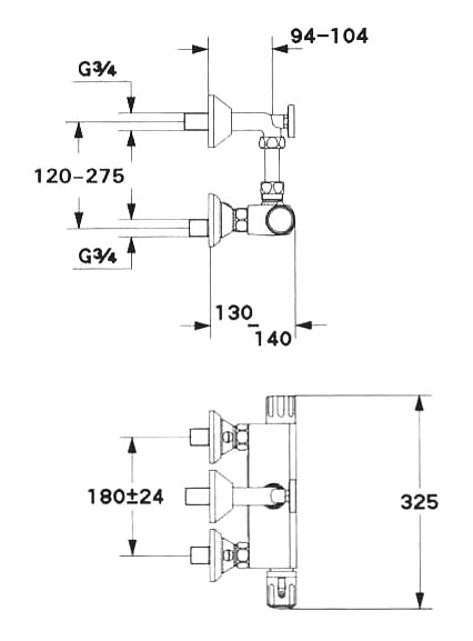 オートマチック2000:サーモスタット混合栓3/4″ 壁取付・温度計仕様