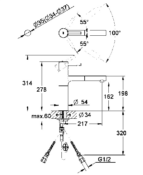 | 水栓取付穴 | φ35(φ34-φ37) |