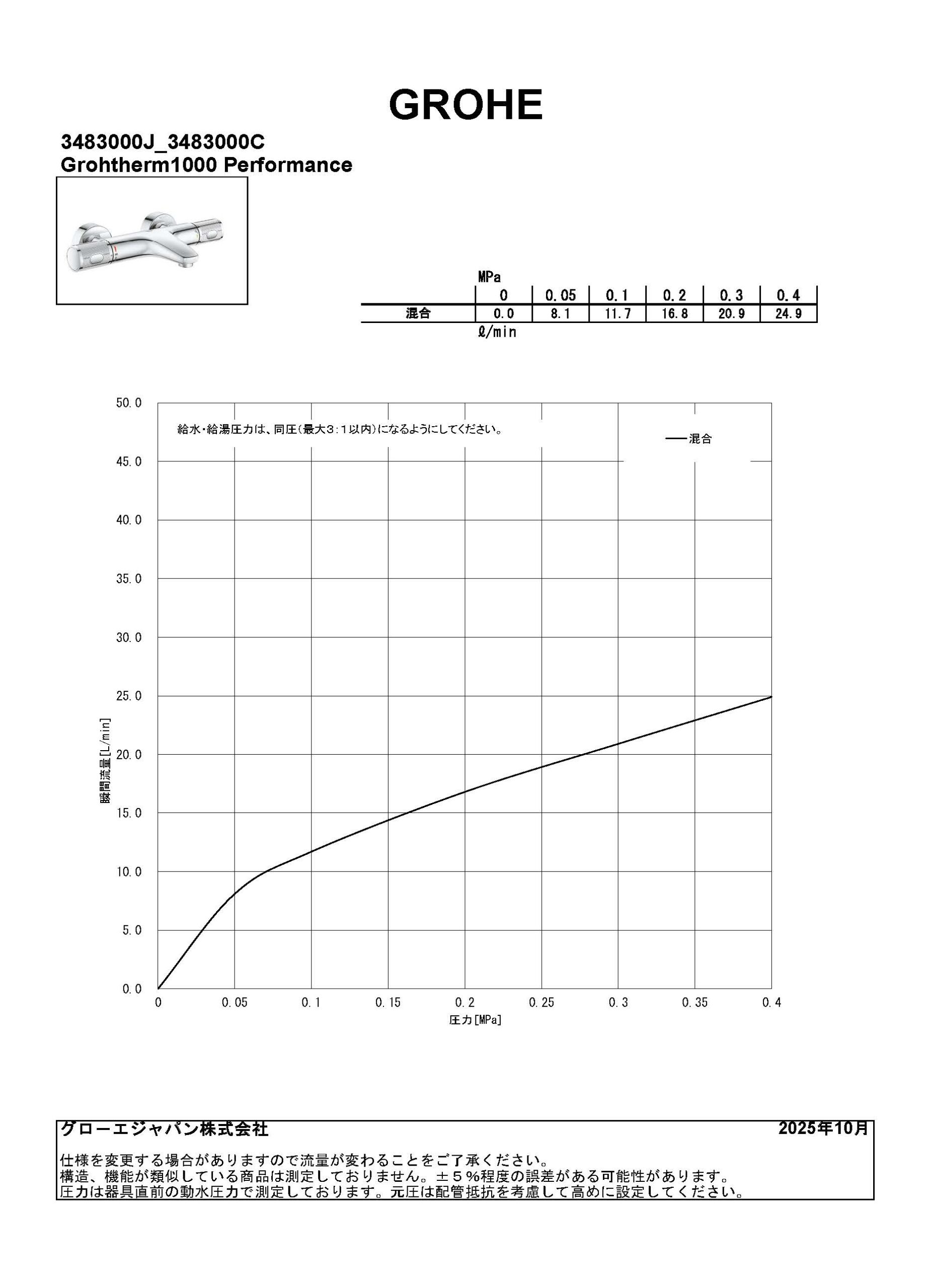 グローサーモ1000パフォーマンス:サーモスタットバス・シャワー混合栓