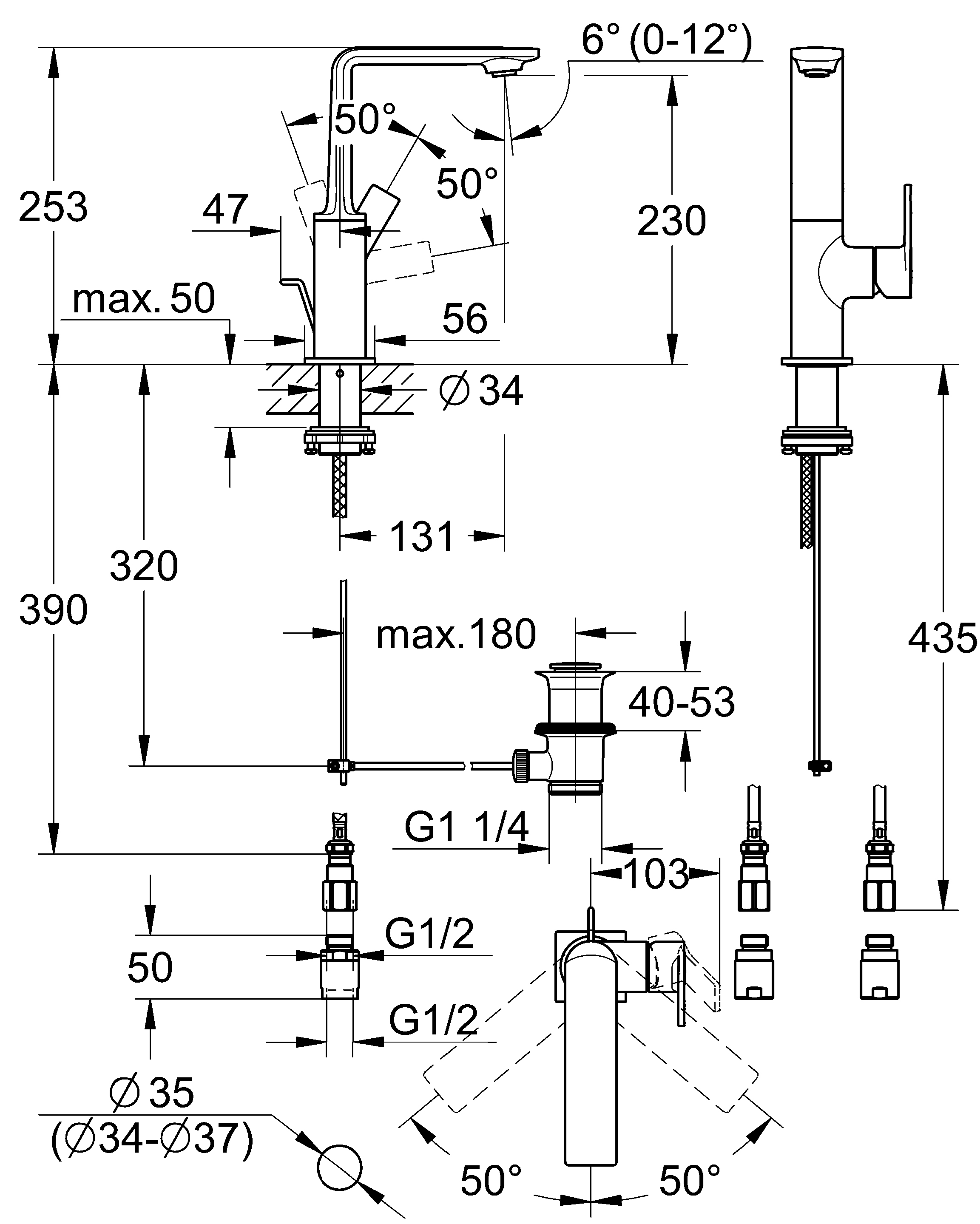 ■吐水口 左右に50度ずつ回転