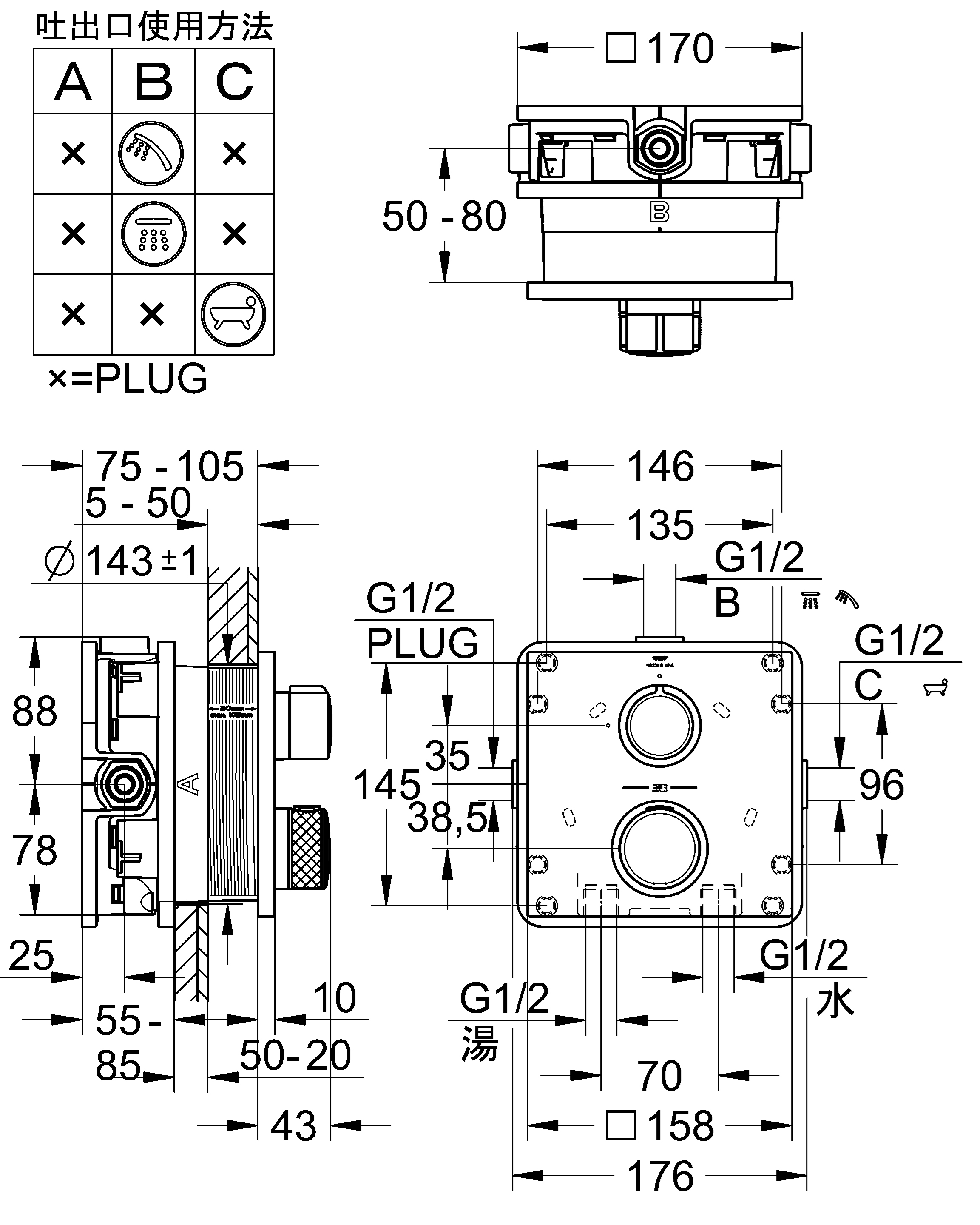スマートボックス サーモスタット埋込混合栓 埋込本体部